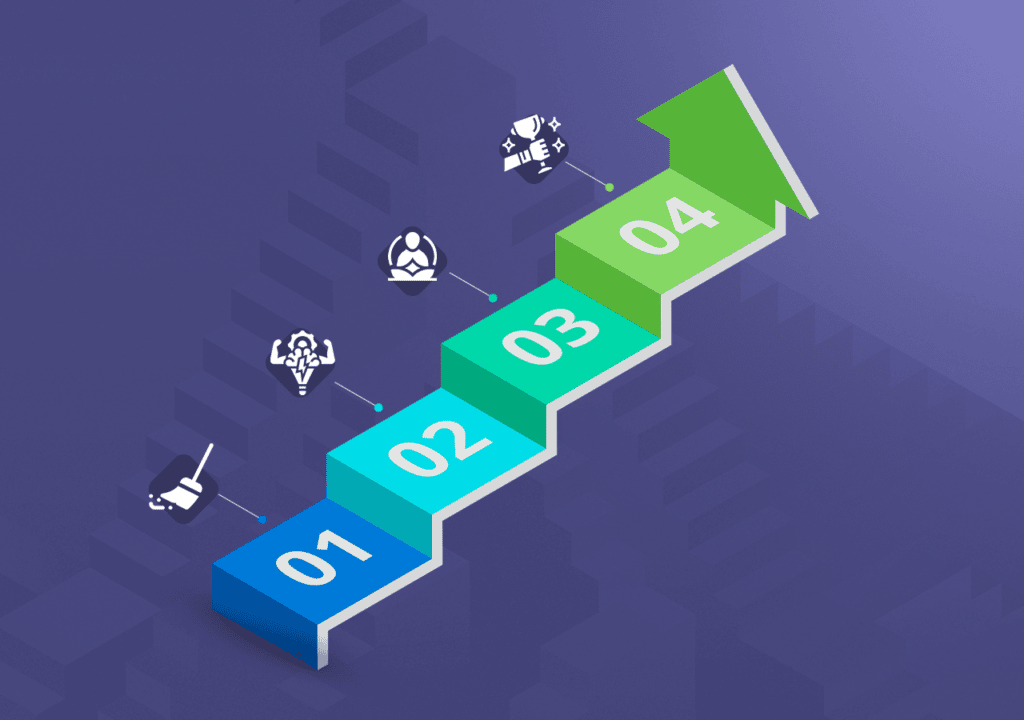 O primeiro degrau é a faxina corporal. Essa é a base que todos irão necessariamente pisar ou, melhor, realizar. Para controlar o transtorno ansioso precisamos ajustar nosso corpo e aprender a tirar o melhor proveito dele. A melhor forma é regular o sono, alimentar-se adequadamente e fazer atividades físicas. É um processo simples, mas não é fácil. Você irá aprender por que precisa ajustar essas atividades, e vamos te ajudar e acompanhar na realização das tarefas. A faxina corporal realizada e bem feita forma o alicerce necessário para os próximos degraus.
